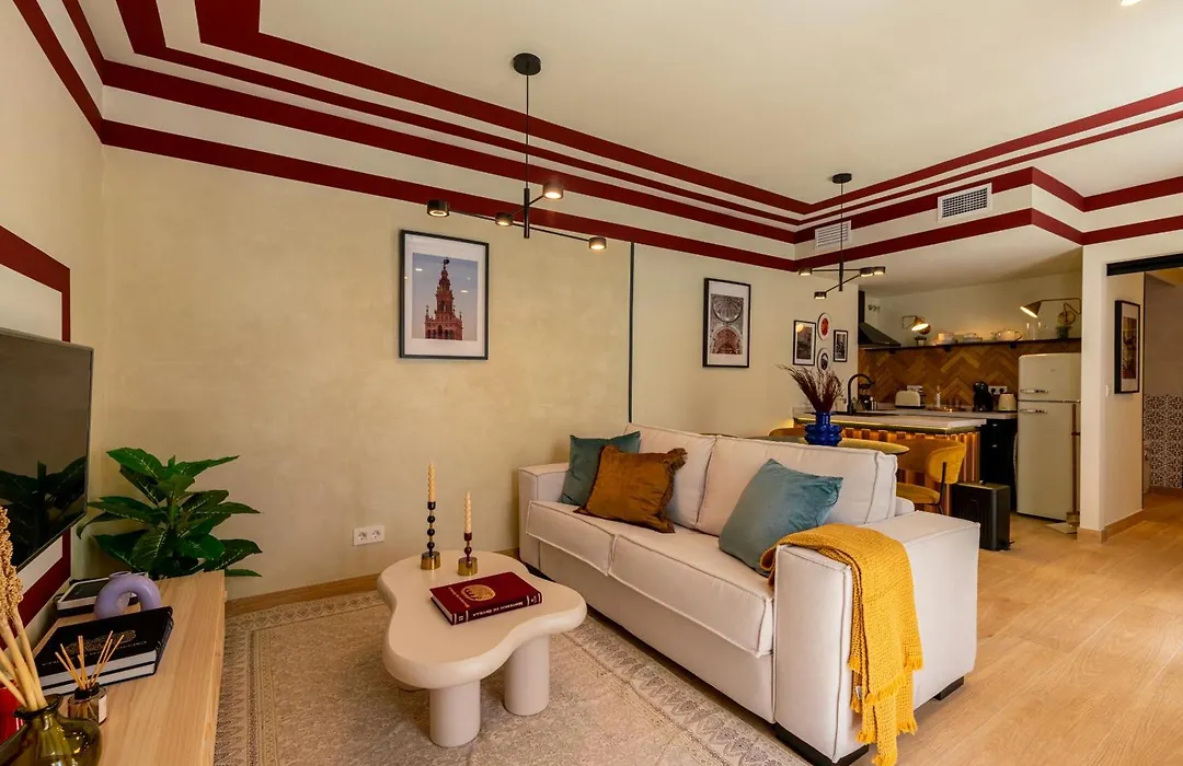 Le domicile de 47 m² est situé dans le quartier "Vieille ville" à Séville, à quelques instants de la Place Salvador. La Basilique de la Macarena trouve à seulement 1 km de seuil de l'appartement. La Place de San Francisco se trouvent également à une courte distance de la résidence.